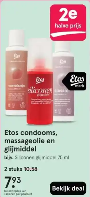 Etos condooms, massageolie en glijmiddel 2e halve prijs
