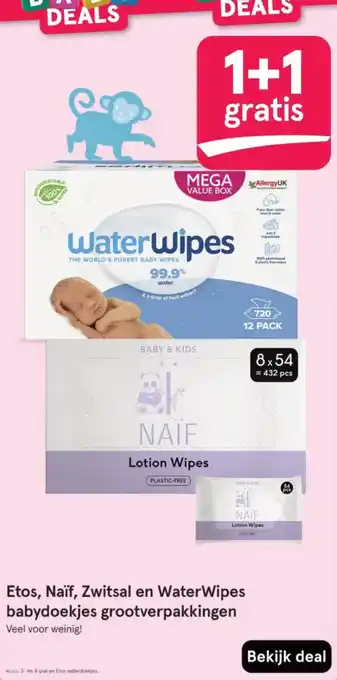 Nu in de aanbieding bij Etos: Etos, Naïf, Zwitsal en WaterWipes babydoekjes grootverpakkingen✅ Actie geldig van 12-01 t/m 18-01.
