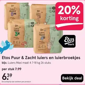 Nu in de aanbieding bij Etos: Etos Puur & Zacht luiers en luierbroekjes✅ Actie geldig van 9-02 t/m 15-02.