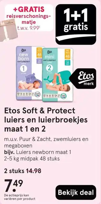 Etos Soft & Protect luiers en luierbroekjes maat 1 en 2 korting bij Etos