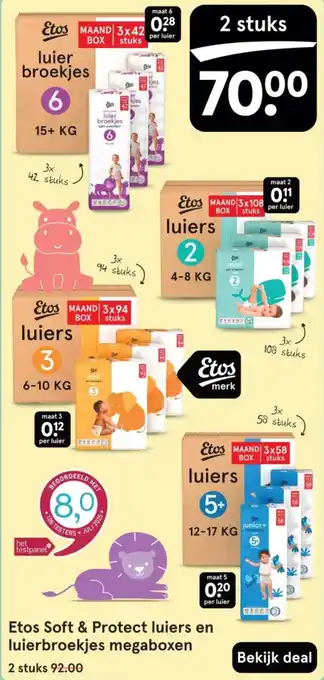 Koop Etos Soft & Protect luiers en luierbroekjes megaboxen komende week met korting