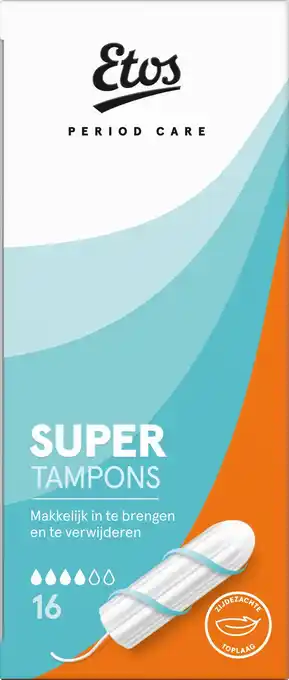 De prijs van de Etos TAMP-DIG Super 16 kan ook teruggevonden worden hierboven op de pagina, samen met de datum van wanneer de aanbieding beschikbaar is. Ook kun je de prijzen in de huidige Etos folder of op de Etos website controleren. De aanbiedingen verzekeren je van het kopen van de Etos producten voor de laagste prijs.