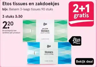 Etos tissues en zakdoekjes 2+1 gratis