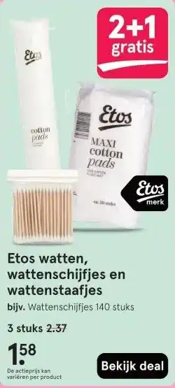 Etos watten, wattenschijfjes en wattenstaafjes aanbieding bij Etos