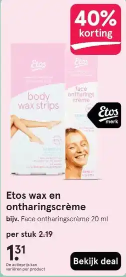 Etos wax en ontharingscrème aanbieding en online acties bij Etos
