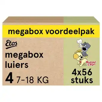 Etos Woezel & Pip Luiers Maxi Maat 4 7-18 kg Megabox 4x56 stuks aanbieding bij Etos