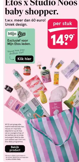 De prijs van de Etos x Studio Noos baby shopper. kan ook teruggevonden worden hierboven op de pagina, samen met de datum van wanneer de aanbieding beschikbaar is. Ook kun je de prijzen in de huidige Etos folder of op de Etos website controleren. De aanbiedingen verzekeren je van het kopen van de Etos producten voor de laagste prijs.