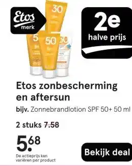 Etos zonbescherming en aftersun aanbieding bij Etos