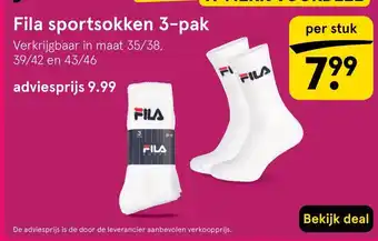 De aanbieding is verkrijgbaar in verschillende winkels, bekijk alle producten om de goedkoopste Fila sportsokken te krijgen. Als je graag wilt kijken of het artikel met meer korting te koop is in een andere winkel, bekijk de categorie 'Drogist en Parfumerie'. Wellicht vind je deze aanbiedingen ook interessant: Fila sportsokken 3-pak, Kaytan sportsokken & Crane Sportsokken.