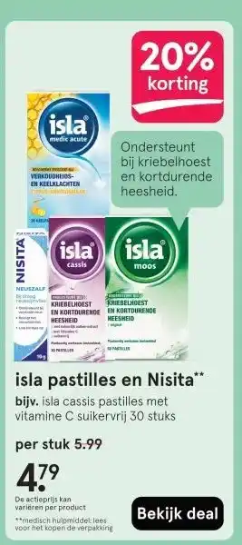 Nu in de aanbieding bij Etos: isla pastilles en Nisita✅ Actie geldig van 19-01 t/m 25-01.