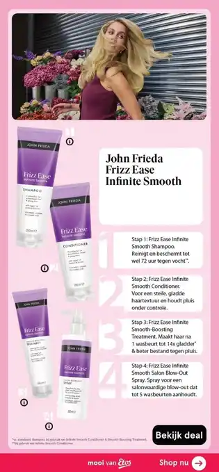 Nu in de aanbieding bij Etos: John Frieda Frizz Ease Infinite Smooth✅ Actie geldig van 9-02 t/m 15-02.