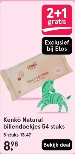 Nu in de aanbieding bij Etos: Kenko Natural billendoekjes 54 stuks✅ Actie geldig van 23-02 t/m 1-03.