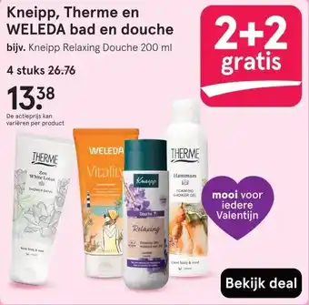 Nu in de aanbieding bij Etos: Kneipp, Therme en WELEDA bad en douche✅ Actie geldig van 9-02 t/m 15-02.