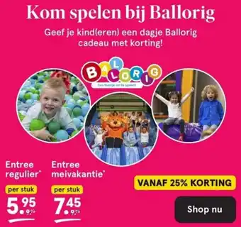 Wil jij je kinderen een onvergetelijke dag vol speelplezier bezorgen? Geef ze dan een dagje Ballorig cadeau! Met onze speciale aanbieding krijg je nu tot wel 25% korting op de reguliere entree. Laat je kinderen lekker ravotten in onze indoor speeltuin terwijl jij geniet van een kopje koffie in ons gezellige café. Of vier een feestje om te spelen en maak van de verjaardag van je kind een onvergetelijke dag! Deze aanbieding geldt ook tijdens de meivakantie, dus kom gezellig langs en profiteer van deze mooie korting. Shop nu en geef je kinderen een dag vol speelplezier bij Ballorig!