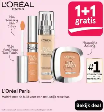 L'Oréal Paris True Match Foundation is een super blendbare foundation die 99,5% van de vrouwen in het Verenigd Koninkrijk met 48 tinten heeft laten vinden dat het hun ware match is. Deze foundation matcht met de huid voor een natuurlijk resultaat en biedt een natuurlijke dekking zonder poederig of cakey effect. Nu verkrijgbaar in een speciale aanbieding: koop 1 en krijg 1 gratis! Ontdek zelf waarom deze foundation zo geliefd is onder vrouwen over de hele wereld. Bekijk de deal en profiteer van deze exclusieve actie. *Auto-evaluatie uitgevoerd door 211 vrouwen in het Verenigd Koninkrijk. Mis deze kans niet om jouw perfecte match te vinden met L'Oréal Paris True Match Foundation.