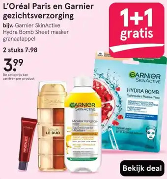 L'Oréal Paris en Garnier gezichtsverzorging 1+1 gratis