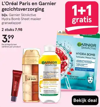 L'Oréal Paris en Garnier gezichtsverzorging 1+1 gratis