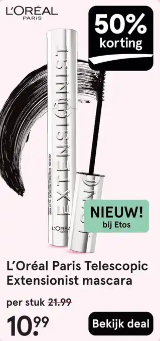 Nu in de aanbieding bij Etos: L'Oréal Paris Telescopic Extensionist mascara✅ Actie geldig van 2-02 t/m 8-02.