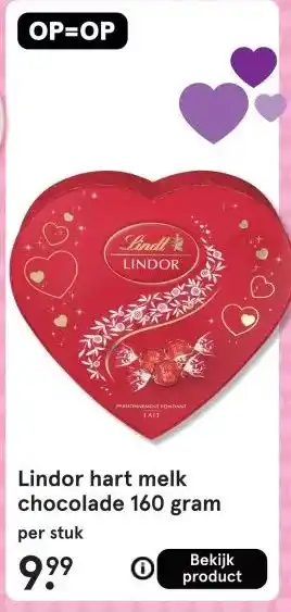 Lindor hart melk chocolade 160 gram aanbieding bij Etos – binnenkort verwacht