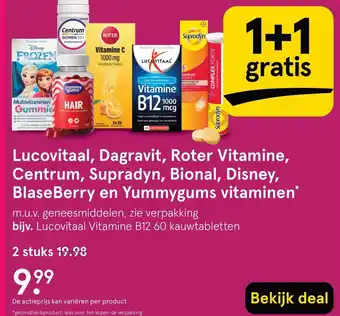Lucovitaal, Dagravit, Roter Vitamine, Centrum, Supradyn, Bional, Disney, BlaseBerry en Yummygums vitaminen 1+1 gratis