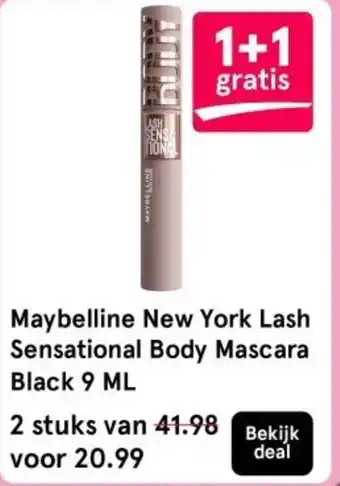 Maybelline New York Lash Sensational Body Mascara Black 1+1 gratis deal