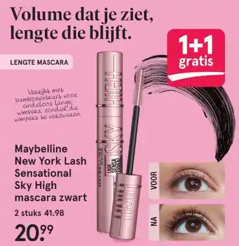Maybelline new york lash sensational sky high mascara zwart 1+1 gratis