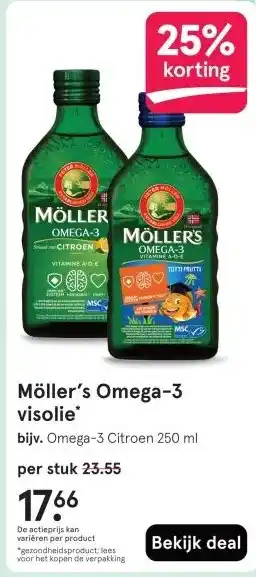 De aanbieding is verkrijgbaar in verschillende winkels, bekijk alle producten om de goedkoopste Möller's Omega-3 visolie te krijgen. Als je graag wilt kijken of het artikel met meer korting te koop is in een andere winkel, bekijk de categorie 'Drogist en Parfumerie'. Wellicht vind je deze aanbiedingen ook interessant: Möller's Omega 3 visolie, Möller's Omega-3 Tutti Frutti Visolie & Möller's Omega-3 Citroen.