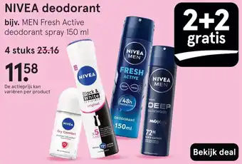De aanbieding is verkrijgbaar in verschillende winkels, bekijk alle producten om de goedkoopste NIVEA deodorant te krijgen. Als je graag wilt kijken of het artikel met meer korting te koop is in een andere winkel, bekijk de categorie 'Drogist en Parfumerie'. Wellicht vind je deze aanbiedingen ook interessant: Nivea deodorant, Nivea deodorant en douche & NIVEA Men fresh kick deodorant.