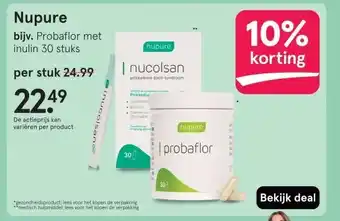 De aanbieding is verkrijgbaar in verschillende winkels, bekijk alle producten om de goedkoopste Nupure te krijgen. Als je graag wilt kijken of het artikel met meer korting te koop is in een andere winkel, bekijk de categorie 'Drogist en Parfumerie'. Wellicht vind je deze aanbiedingen ook interessant: Nupure nucolsan - Prikkelbare Darm Syndroom, 30 sachets, aanbieding 2 & aanbieding 3.