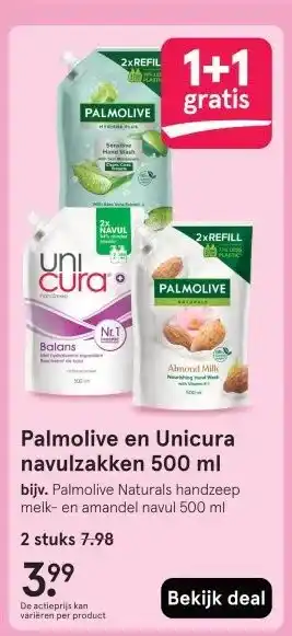 Palmolive en Unicura navulzakken 500 ml aanbieding bij Etos