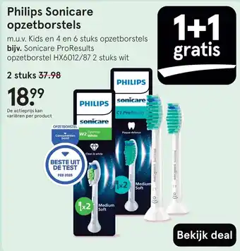 De aanbieding is verkrijgbaar in verschillende winkels, bekijk alle producten om de goedkoopste Philips Sonicare opzetborstels te krijgen. Als je graag wilt kijken of het artikel met meer korting te koop is in een andere winkel, bekijk de categorie 'Drogist en Parfumerie'. Wellicht vind je deze aanbiedingen ook interessant: Philips Sonicare opzetborstels, Philips Sonicare opzetborstels & Philips Sonicare ProResults HX6012/87 Opzetborstels.
