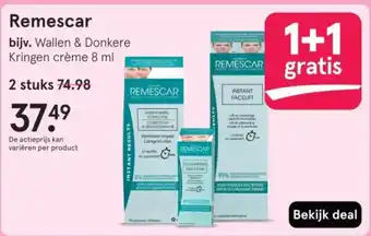 Profiteer nu van de actieprijs van slechts 37.49 voor 2 stuks Remescar Wallen & Donkere Kringen crème 8 ml. Met deze crème zie je direct resultaat en krijg je een facelift effect. De unieke formule van Remescar zorgt ervoor dat wallen en donkere kringen verminderen, waardoor je er frisser en jonger uitziet. De actieprijs kan variëren per product, dus wees er snel bij om te profiteren van deze aanbieding. Bekijk de deal nu en ontdek de kracht van Remescar voor een stralende en jeugdige uitstraling. Bestel nu en ontvang een gratis Remescar bij je aankoop, zodat je nog langer kunt genieten van de fantastische resultaten die Remescar biedt.