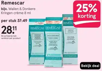 Remescar Wallen & Donkere Kringen crème 8 ml is een effectieve oplossing voor vermoeide ogen. Met de krachtige formule van Remescar worden wallen en donkere kringen rond de ogen direct verminderd. De crème zorgt voor een instant facelift effect, waardoor de huid er strakker en jonger uitziet. De actieprijs van 37.49 per stuk met 25% korting maakt het product extra aantrekkelijk. De resultaten zijn direct zichtbaar en langdurig, waardoor je er de hele dag fris en stralend uitziet. Met Remescar Wallen & Donkere Kringen crème 8 ml hoef je je geen zorgen meer te maken over vermoeide ogen. Bekijk de deal en profiteer van de 25% korting op dit geweldige product!