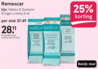 Remescar Wallen & Donkere Kringen crème is een geconcentreerde formule die wallen en donkere kringen onder de ogen vermindert in slechts 2 minuten. De crème lift en verstevigt het gezicht en de kaaklijn, waardoor een instant facelift effect wordt gecreëerd. Met klinisch bewezen doeltreffendheid en ingrediënten van natuurlijke oorsprong, is Remescar een betrouwbare keuze voor het verbeteren van de huid rondom de ogen. De 8 ml tube bevat genoeg crème voor 180 applicaties. Profiteer nu van 25% korting op dit product van MEDMETICS. Bekijk de deal en ervaar zelf de instant corrective skincare van Remescar.