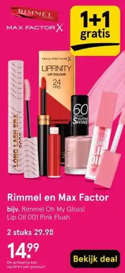 Rimmel en Max Factor 1+1 gratis