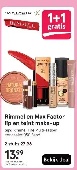 Rimmel en Max Factor lip en teint make-up 1+1 gratis