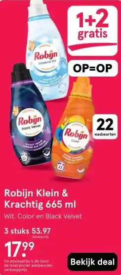 Nu in de aanbieding bij Etos: Robijn Klein & Krachtig 665 ml✅ Actie geldig van 13-04 t/m 19-04.
