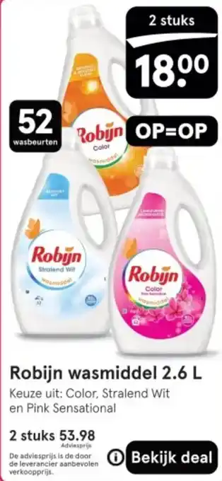 Bekijk de meest recente aanbiedingen en blijf op de hoogte van welke winkels Robijn wasmiddel op korte termijn met korting aanbieden. Niemand betaalt graag te veel – daarom houden wij de prijzen scherp in de gaten. Pas je (boodschappen)lijst aan op basis van acties van deze week én verwachte deals. Sommige aanbiedingen gelden alleen in de winkel, dus check regelmatig waar Robijn wasmiddel het voordeligst verkrijgbaar is.Veelgestelde vragen over Robijn wasmiddel