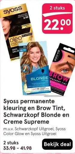 Syoss permanente kleuring en Brow Tint, Schwarzkopf Blonde en Creme Supreme aanbieding bij Etos – binnenkort verwacht