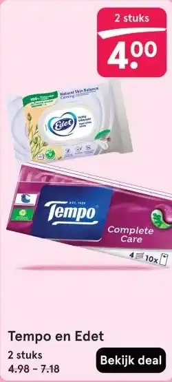 Nu in de aanbieding bij Etos: Tempo en Edet✅ Actie geldig van 16-02 t/m 22-02.