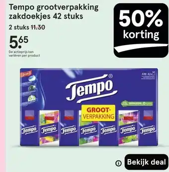 Tempo grootverpakking zakdoekjes 42 stuks aanbieding en online acties bij Etos