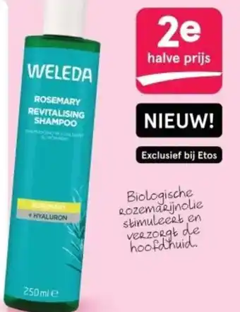 Ontdek de nieuwe WELEDA Rozemarijn Revitaliserende Shampoo exclusief bij Etos. Deze biologische shampoo met rozemarijnolie stimuleert de hoofdhuid en verzorgt het haar intensief. De formule met hyaluronzuur zorgt voor een diepe hydratatie en versterkt de haarstructuur. Geniet van de heerlijke geur van rozemarijn terwijl je je haar reinigt en revitaliseert. Nu tijdelijk 2e halve prijs op de WELEDA Rozemarijn Revitaliserende Shampoo van 250 ml. Verwen jezelf met deze luxe shampoo en geef je haar de verzorging die het verdient. Haal de natuurlijke kracht van rozemarijn in huis en geniet van gezond en stralend haar!