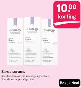 Ontdek de Zarqa Sensitive Serums, speciaal ontwikkeld voor de (extra) gevoelige huid. Deze serums, waaronder het Serum Anti-Age en Serum Vitamine C, bevatten krachtige ingrediënten die de huid verzorgen en beschermen. Profiteer nu van 10,00 korting op de Zarqa serums en bekijk de deal. De serums zijn geschikt voor dagelijks gebruik en helpen bij het verminderen van huidproblemen. Of je nu op zoek bent naar een Serum Clear Skin of een Serum Anti-Age, Zarqa heeft voor elk huidtype een passende oplossing. Verwen je huid met de verzorgende en kalmerende werking van Zarqa serums en geniet van een stralende en gezonde huid.