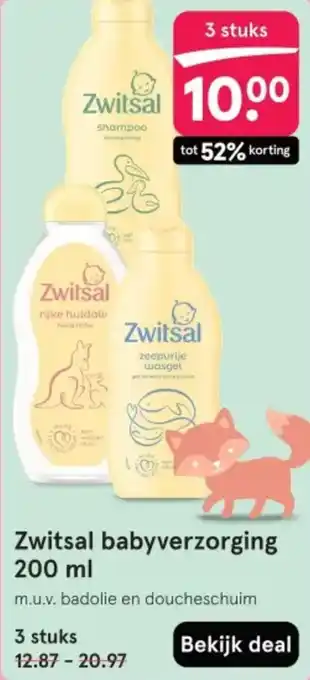De aanbieding is verkrijgbaar in verschillende winkels, bekijk alle producten om de goedkoopste Zwitsal babyverzorging te krijgen. Als je graag wilt kijken of het artikel met meer korting te koop is in een andere winkel, bekijk de categorie 'Drogist en Parfumerie'. Wellicht vind je deze aanbiedingen ook interessant: Zwitsal babyverzorging, Zwitsal water & care babyverzorging & Alle babyverzorging.