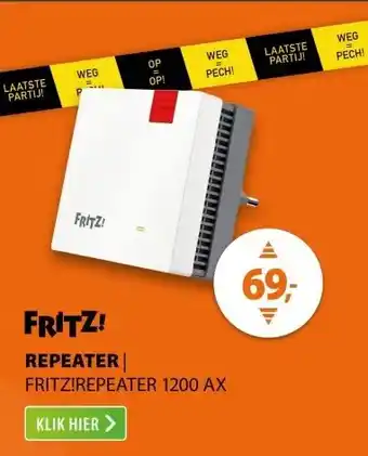 Nu in de aanbieding bij Expert: AVM FRITZ!Repeater 1200 AX✅ Actie geldig van 18-01 t/m 25-01.