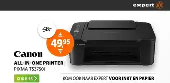 De prijs van de Canon PIXMA TS3750i kan ook teruggevonden worden hierboven op de pagina, samen met de datum van wanneer de aanbieding beschikbaar is. Ook kun je de prijzen in de huidige Expert folder of op de Expert website controleren. De aanbiedingen verzekeren je van het kopen van de Expert producten voor de laagste prijs.