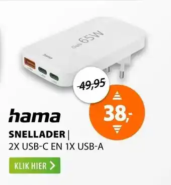 Deze Hama Snellader 2x USB-C 1x USB-A platte mini-oplader PD 65 W Wit is nu in de aanbieding bij Expert. Op deze pagina vind je alle informatie over actuele prijzen, actievoorwaarden en looptijd. Vergelijk ook andere relevante aanbiedingen en acties rondom Hama Snellader 2x USB-C 1x USB-A platte mini-oplader PD 65 W Wit, zodat je altijd de slimste keuze maakt. De aanbieding loopt van 08-02-2026 tot en met 15-02-2026. Is de actie verlopen? Geen probleem – vergelijkbare deals vind je altijd via deze pagina. Volg eventueel de productcategorie om automatisch op de hoogte te blijven van nieuwe aanbiedingen of prijsdalingen voor Hama Snellader 2x USB-C 1x USB-A platte mini-oplader PD 65 W Wit.Veelgestelde vragen over Hama Snellader 2x USB-C 1x USB-A platte mini-oplader PD 65 W Wit