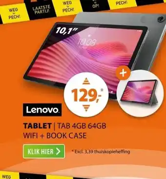 Nu in de aanbieding bij Expert: Lenovo Tab 4GB 64GB Wifi + Book Case Grijs✅ Actie geldig van 18-01 t/m 25-01.