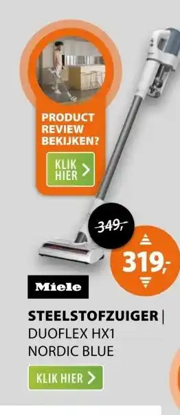 De Miele Duoflex HX1 Blauw is momenteel met korting verkrijgbaar bij Expert. Hier vind je alle details over prijs, geldigheidsduur en actievoorwaarden. Vergeet niet om ook andere aanbiedingen en deals voor Miele Duoflex HX1 Blauw te bekijken zodat je zeker weet dat je de beste prijs betaalt. De kortingsactie loopt van 08-03-2026 tot 15-03-2026. Is de actie inmiddels verlopen? Geen zorgen, vergelijk dan soortgelijke aanbiedingen of volg de productcategorie voor toekomstige prijsverlagingen. Zo koop je altijd met voordeel.Veelgestelde vragen over Miele Duoflex HX1 Blauw