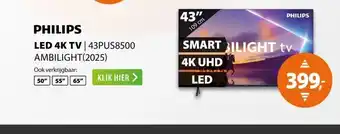 De Philips 43PUS8500 Ambilight (2025) is momenteel met korting verkrijgbaar bij Expert. Hier vind je alle details over prijs, geldigheidsduur en actievoorwaarden. Vergeet niet om ook andere aanbiedingen en deals voor Philips 43PUS8500 Ambilight (2025) te bekijken zodat je zeker weet dat je de beste prijs betaalt. De kortingsactie loopt van 15-02-2026 tot 22-02-2026. Is de actie inmiddels verlopen? Geen zorgen, vergelijk dan soortgelijke aanbiedingen of volg de productcategorie voor toekomstige prijsverlagingen. Zo koop je altijd met voordeel.Veelgestelde vragen over Philips 43PUS8500 Ambilight (2025)